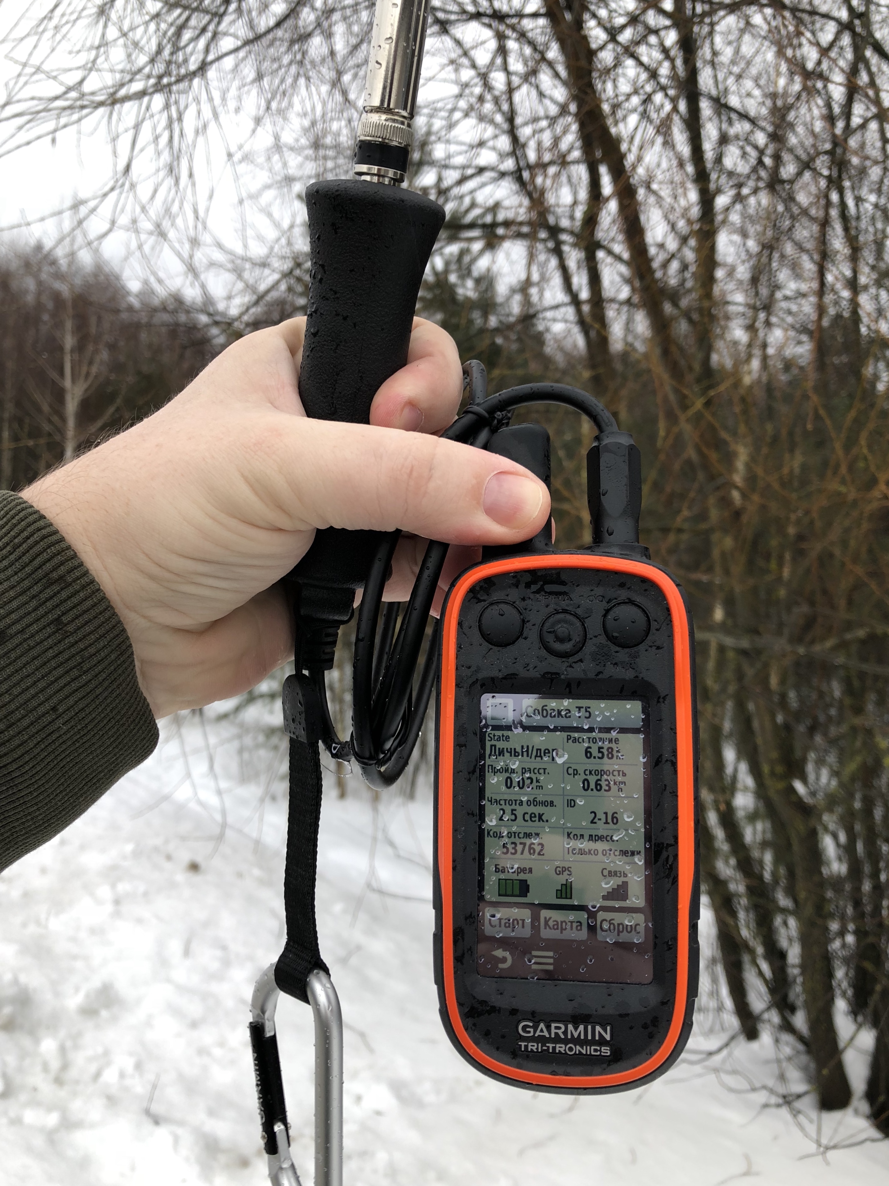 В итоге где то на дистанции 6 км от ошейника сдох телескоп от гармин, кстати маленькая штатная резинка умерла в этом рельефе ровно на двух км, что на 1 км меньше прошлого моего теста.