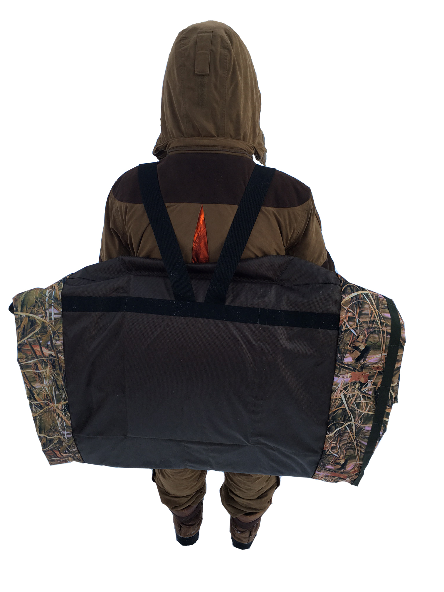 Засидка складывается до размеров 81x61 см. Есть специальный ремень и ручка для ношения собраной засидки.