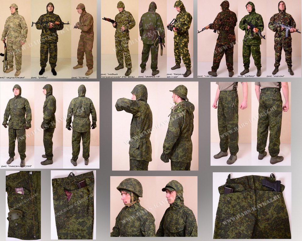 Различные вставки из другого материала и камуфляжа, всё это можно сделать по вашему желанию.