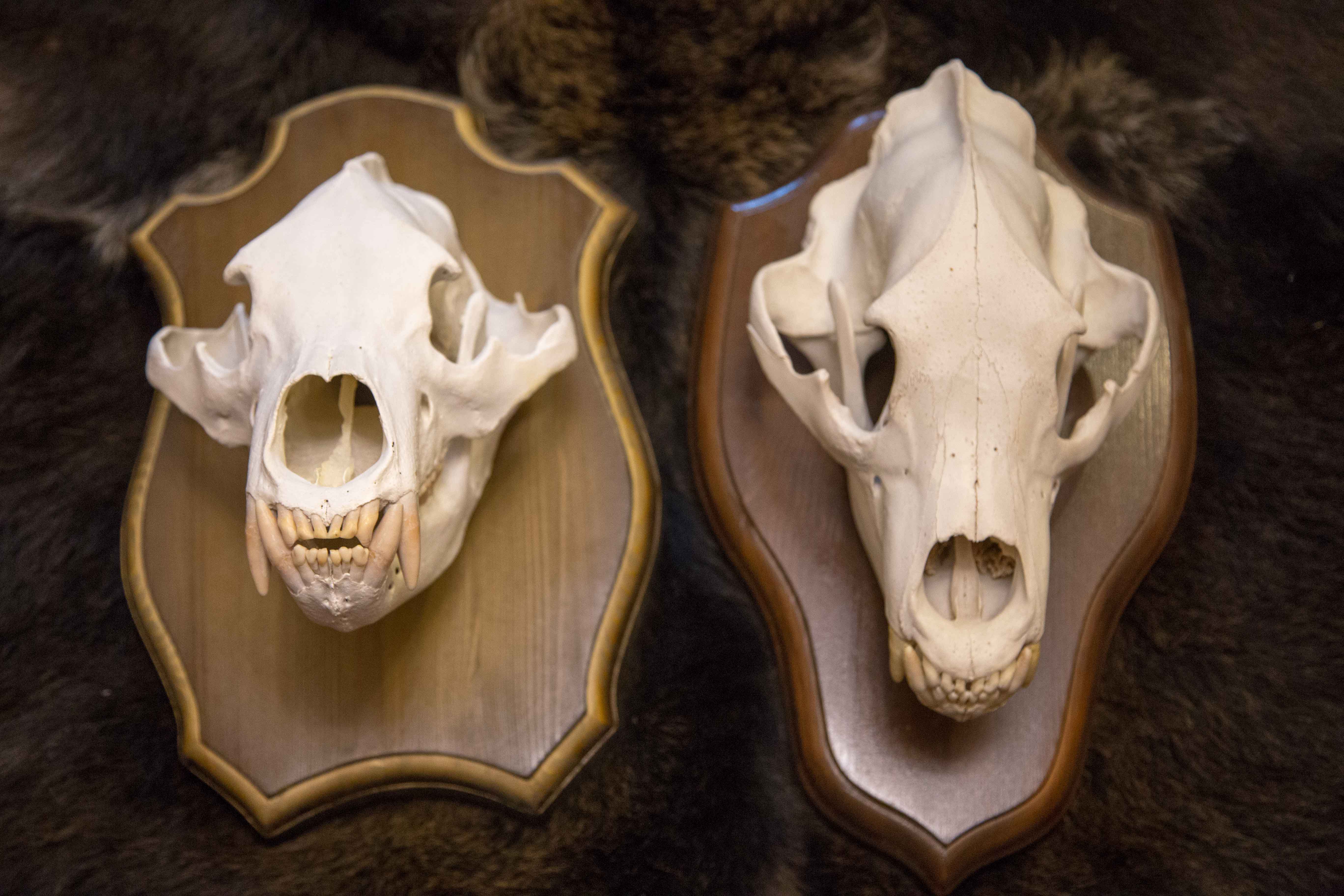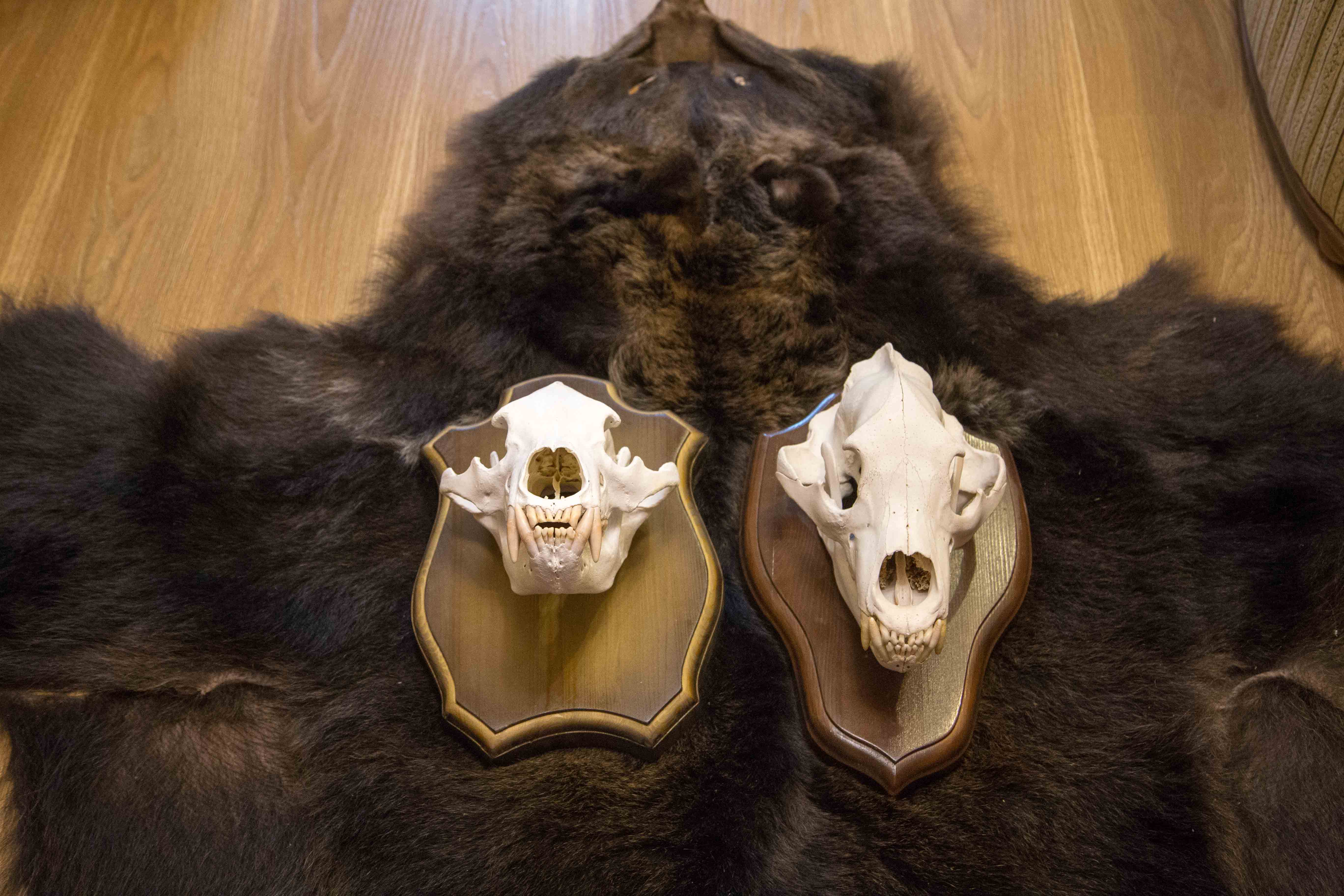 Все экспонаты (кроме шкур, разумеется) на прекрасных подставках из натурального дерева для размещения на стене.