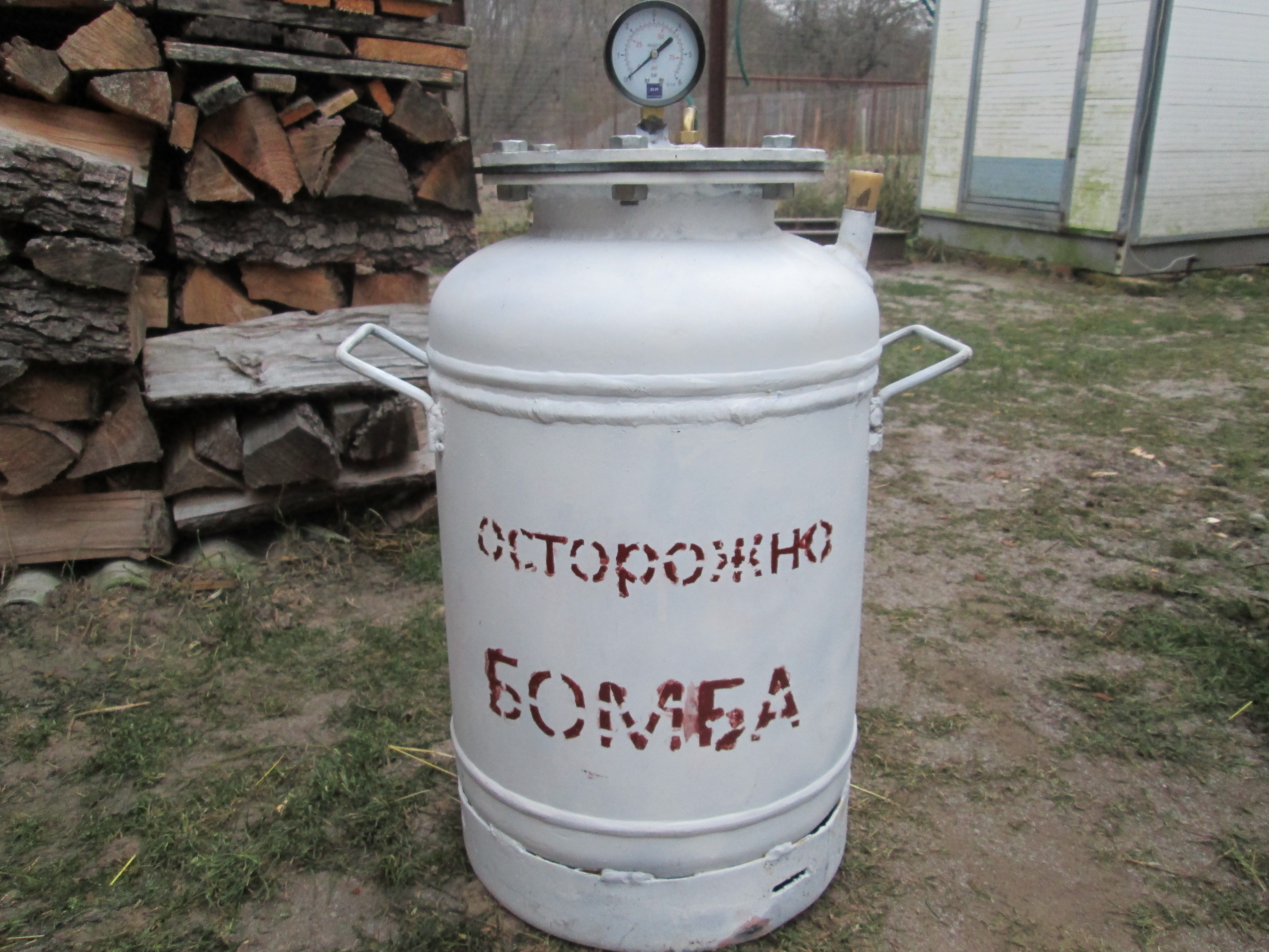 Комментарий к файлу: продам самодельный автоклав из газового балона,вместимость 14 поллитровых банок возможна манипуляция с литровыми испытан давлением 5 атм. цена 5т.