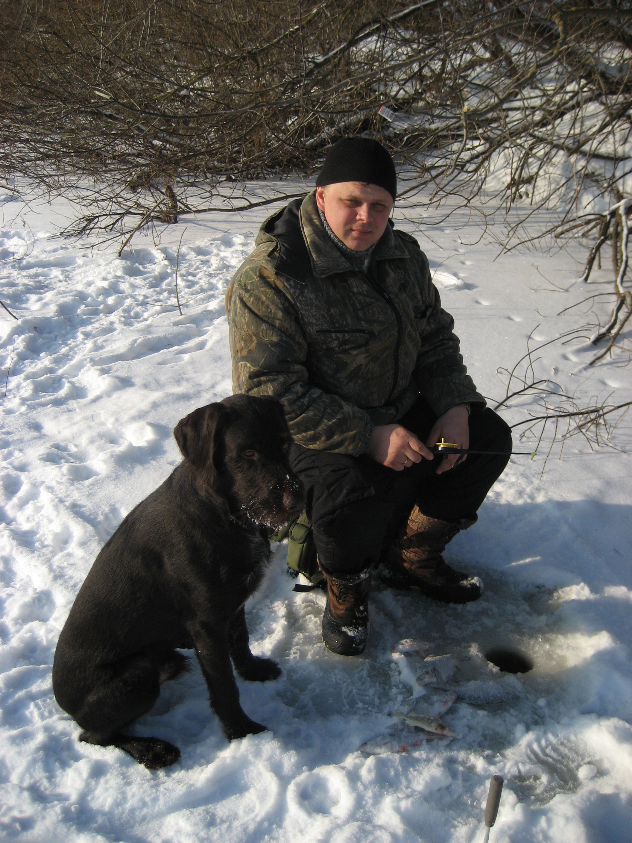 Решили выехать на Десну отдохнуть от охот.Усилиями молодого легашатника Александра было взято несколько густёрок.Ну и конечно не могу не отметить, улов четвероногого мармышечника Яра :lol: .Ну вот как то так. :D
