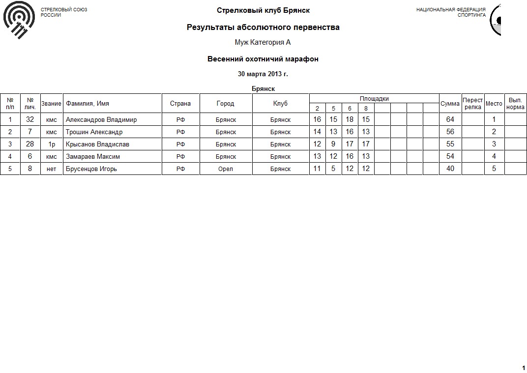 1 Александров Владимир 30-31 марта