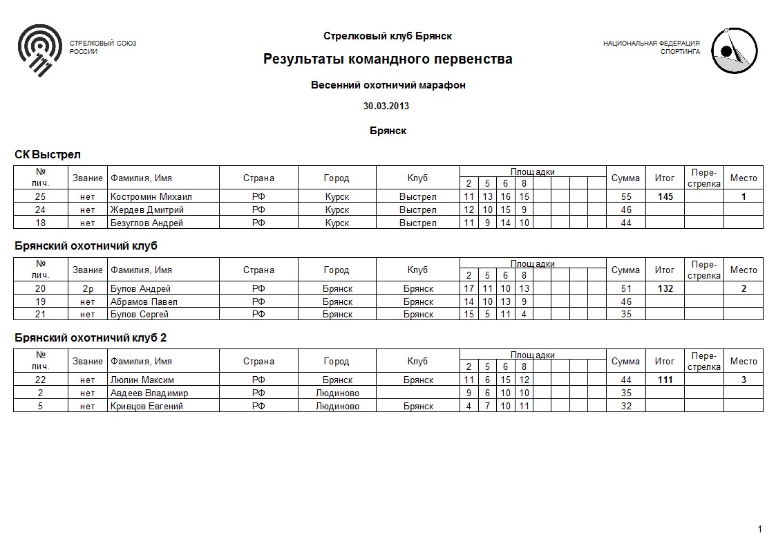 Две команды Брянского Охотничего Клуба сегодня на пьедестале.