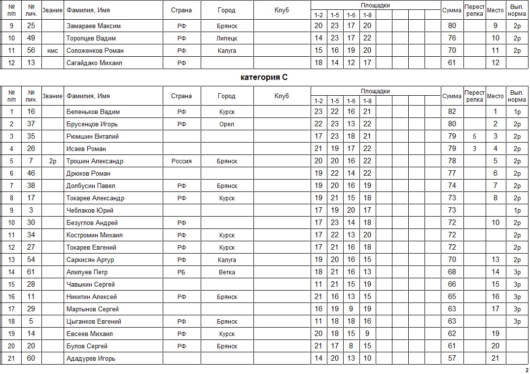 Соревнования проводятся в категориях: мужчины: А (МСМК, МС), В (КМС, 1 разряд), С (2, 3 разряд и любители), Юниоры, Ветераны, Командный зачет