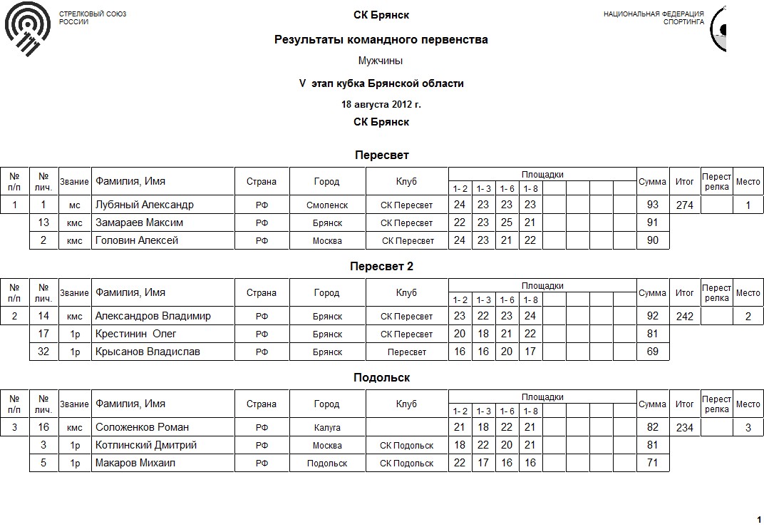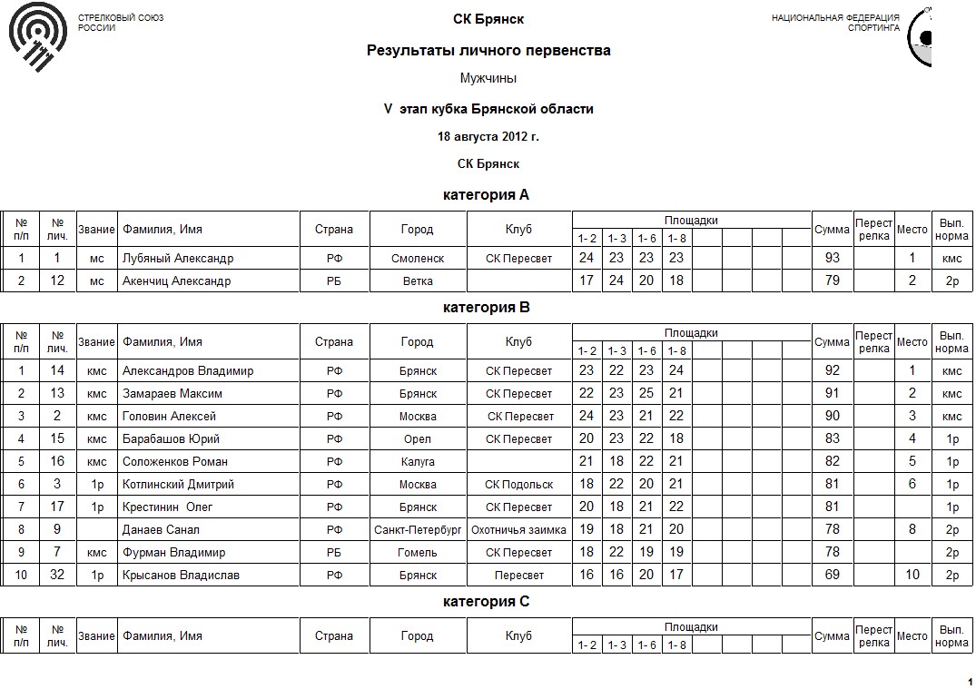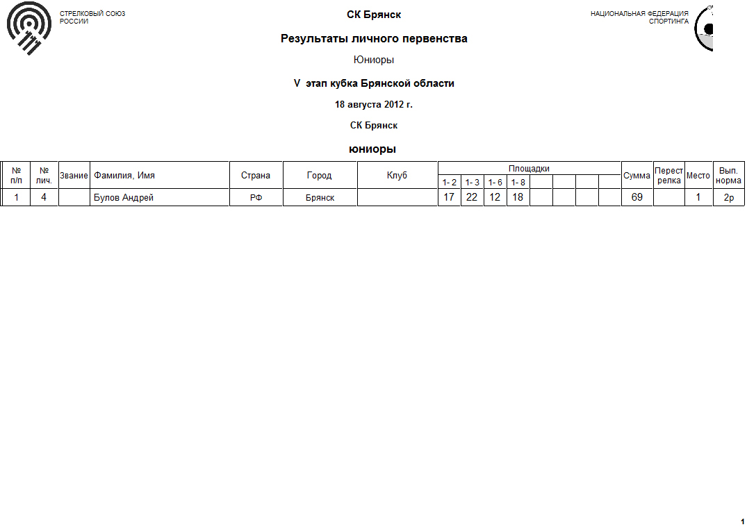 18 августа 2012 года "Стрелковый Клуб Брянск" проводит V этап Кубка Брянской области по спортинг-компакту.