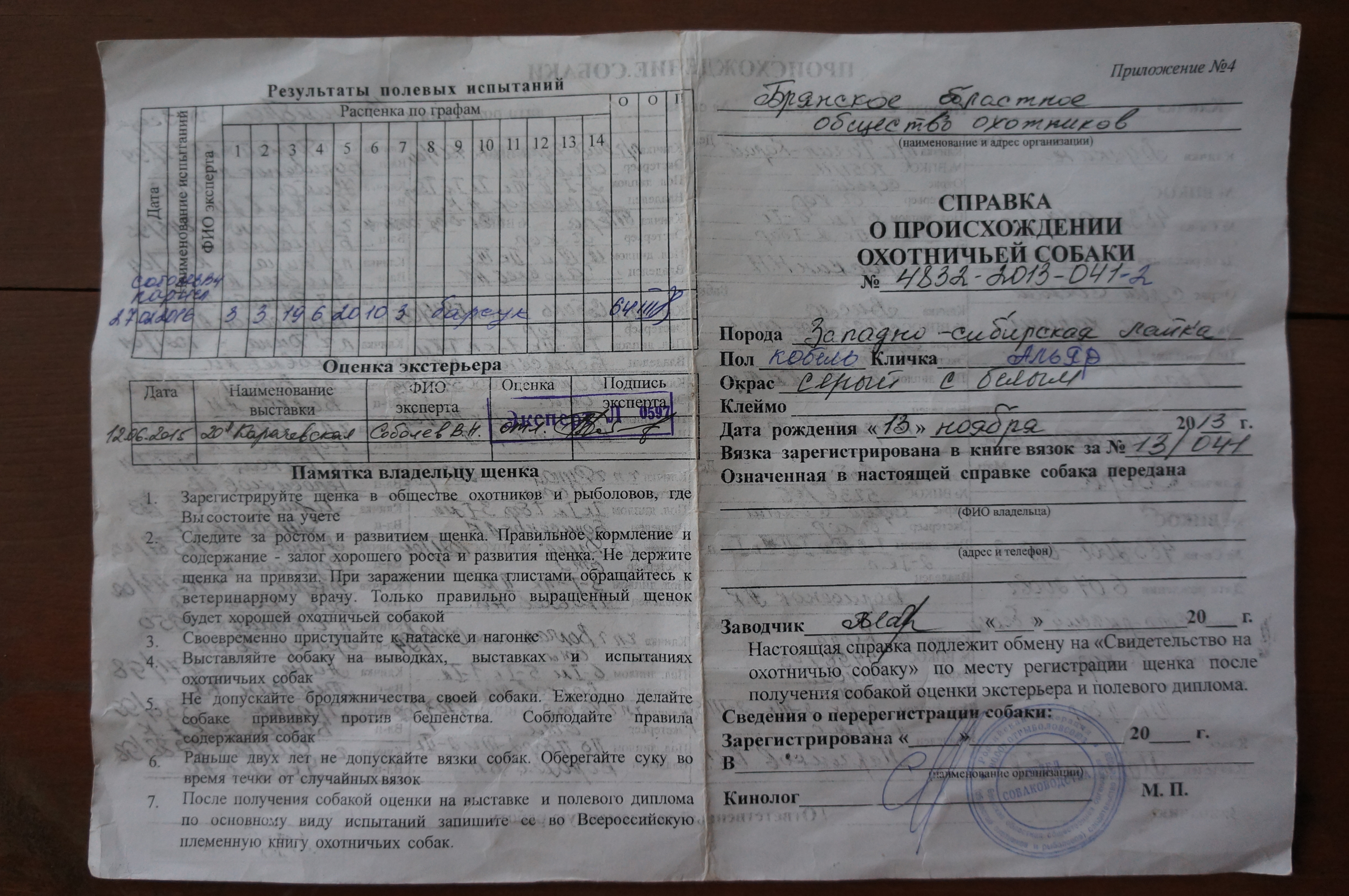 13. Краткое объяснения причины продажи собаки: уменьшение поголовья