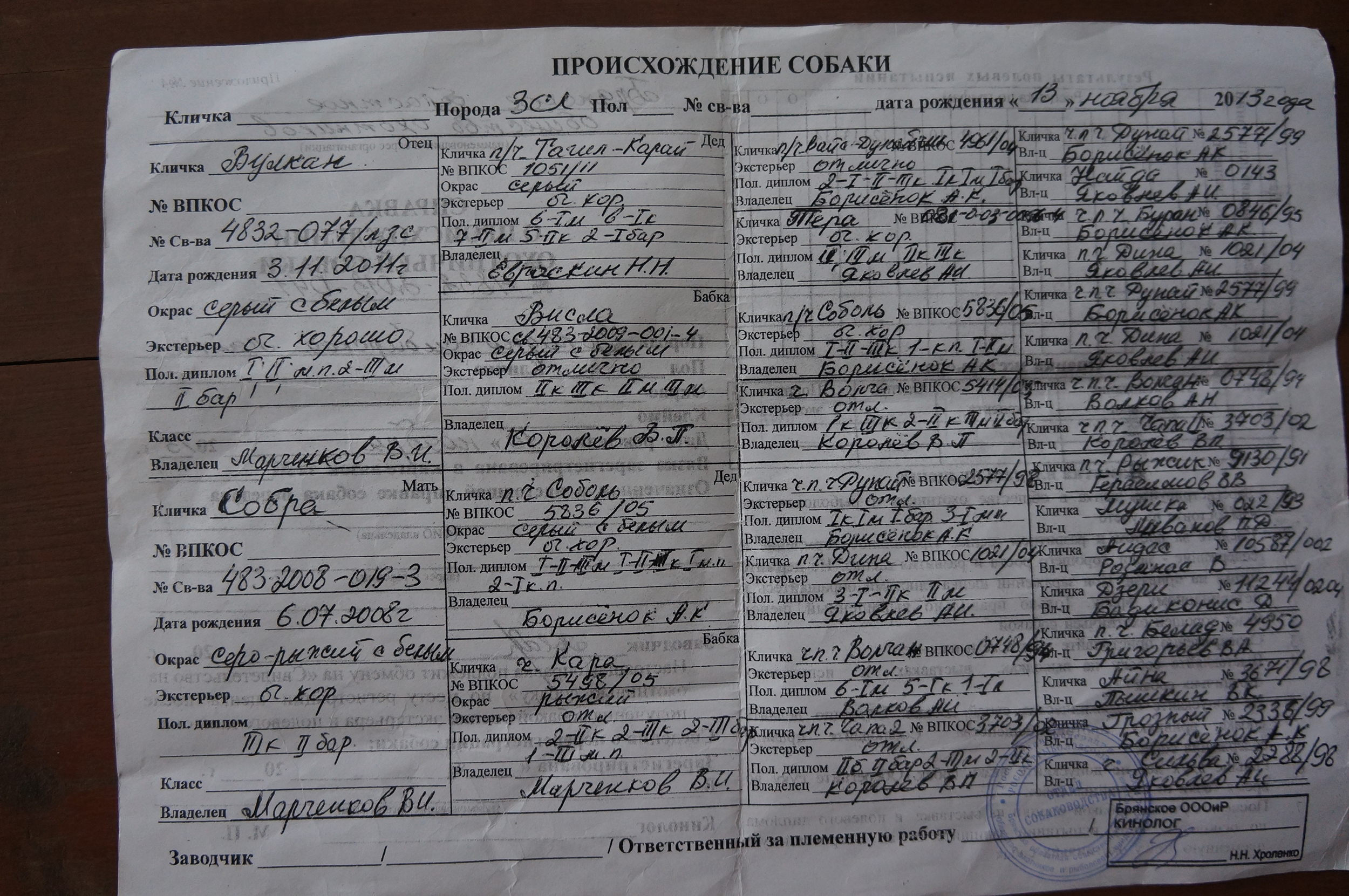 8. Происхождение: заполнять ИЛИ скан родословной прикрепить