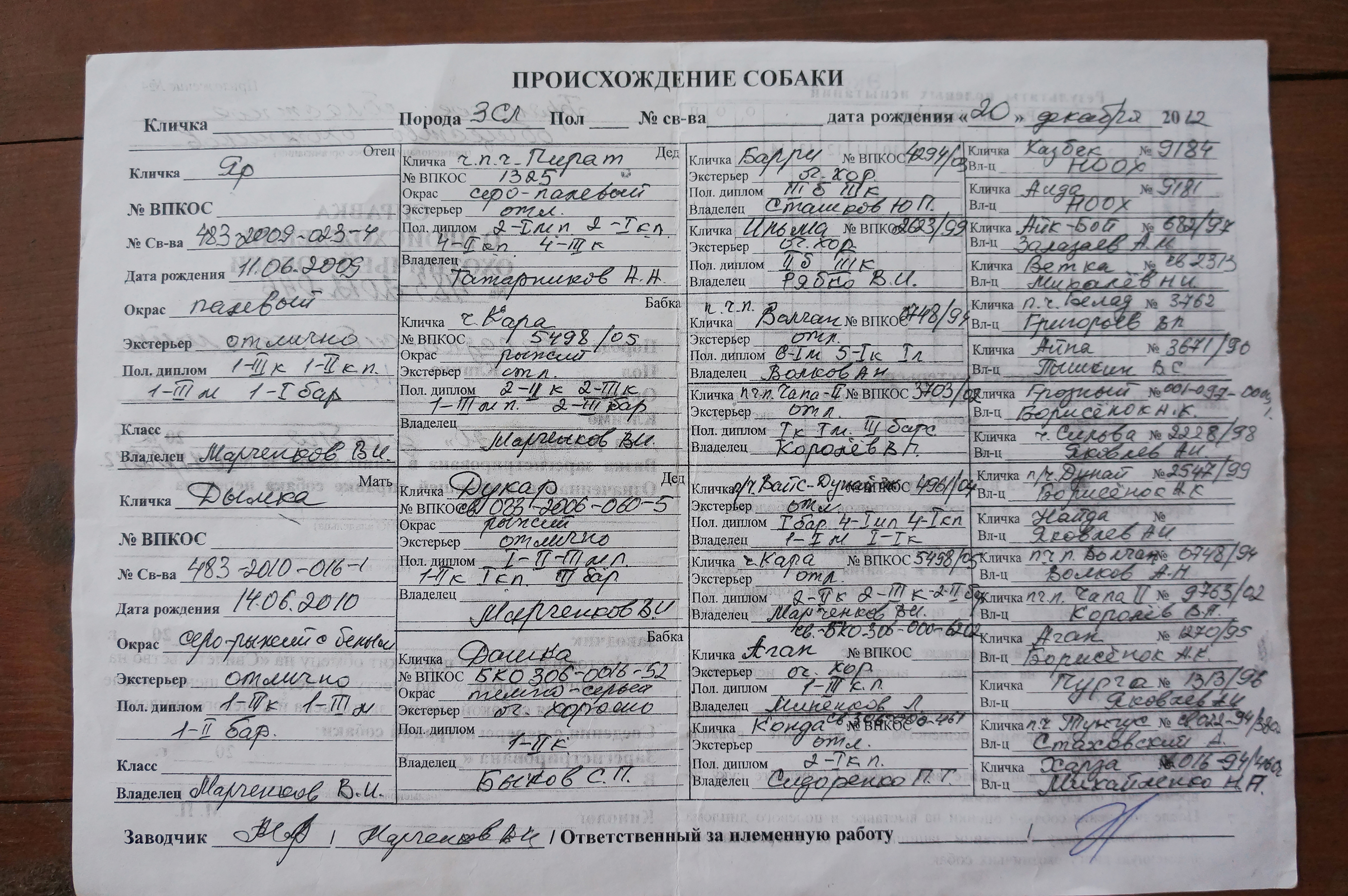 9. Владелец собаки :Марченков Виктор Иванович