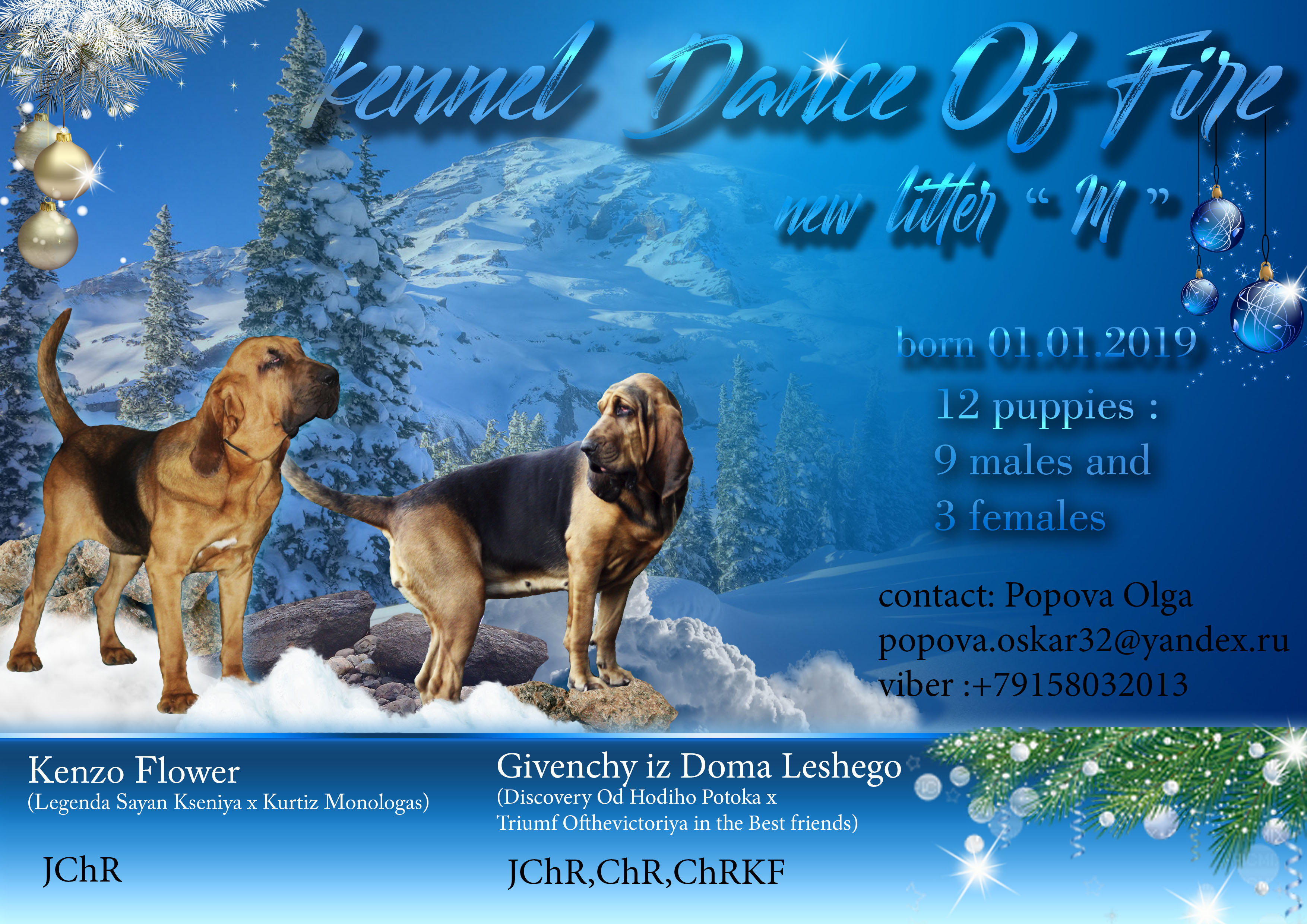 Питомник собак пород Бассет Хаунд и Бладхаунд -"DANCE OF FIRE" предлагает на продажу щенков породы Бладхаунд,сук и кобелей. Дата рождения щенков-01.01.2019 Отец-Кензо Флауэр (ЮЧР...) Мать-Живанши Из Дома Лешего (ЮЧР,ЧР,ЧРКФ) Щенки с отличным костяком,красивыми породными головами,на момент переезда в новую семью будут полностью привиты,будут иметь клеймо и щенячью метрику РКФ. Щенки находятся в г.Брянск ,более подробную информацию предоставлю в переписке или по телефону ... Контакты: Ольга,89158032015 Вайбер,Ватсап