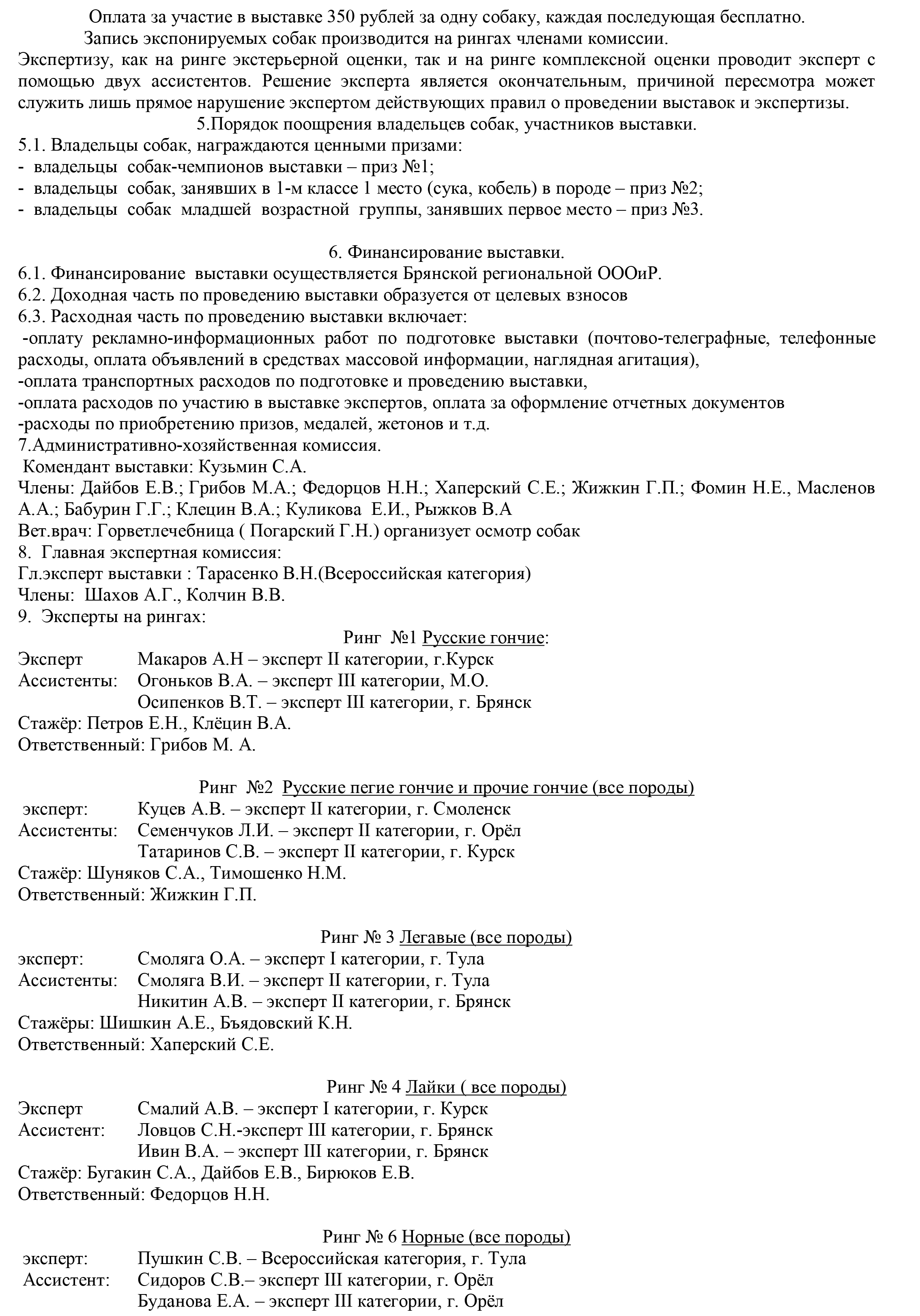 Регистрация собак будет проводиться в день выставки с 08.00 до 10.00, построение участников и торжественное открытие в 10.00. Начало работы рингов в 10.30. Владельцы собак должны иметь регистрационные документы на собаку и ветеринарный паспорт с отметкой о вакцинации против бешенства, действительной на день проведения выставки.