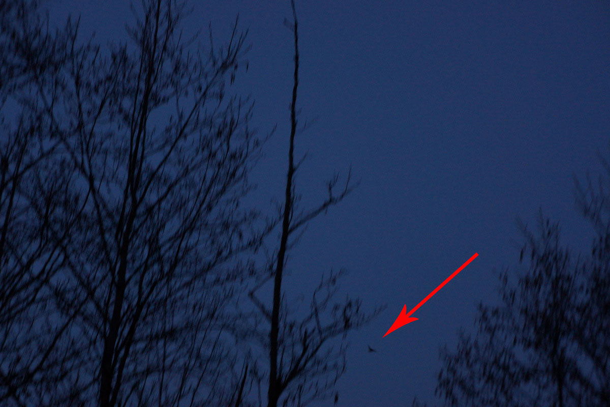 В плане вальдшнепа тяга сегодня была взрослая, около 15 пролетов, парочка налетов было "верных" Все бы хорошо но фотик отказывается ночью фокусироваться. Пару тройку валюш завпечатлел но посмотрел на компе фотки и поудалил все. Эта фотка была самая сносная И то выделил птичку стрелочкой иначе без пол литра не найти