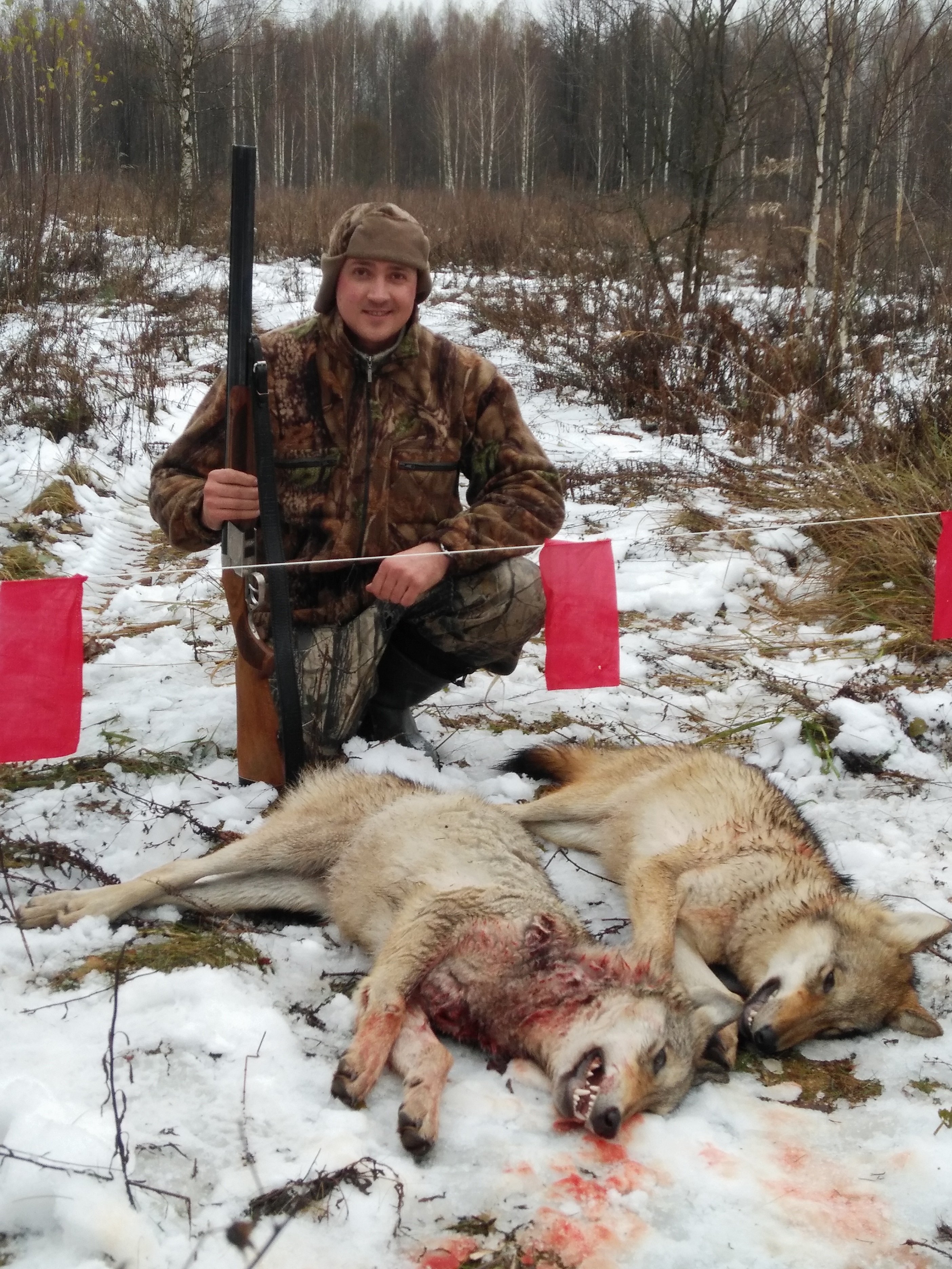 — Охота на волка очень трудоемкая. Наши охотники и егеря тщательно отслеживали пути передвижения волчьих стай (а они за день могут проходить до 80 километров), делали разведку, определяли границы коренных участков волчьих семей, окладывали (обставляли флажками) периметр, загоняли – то есть действовали по всем правилам охотничьей науки. Но несколько предыдущих охот были не совсем удачными: на заключительном этапе никто не мог попасть в цель. То всего одного волка подстрелят, то двух. В охотхозяйстве «Нерусса» убили четырех.