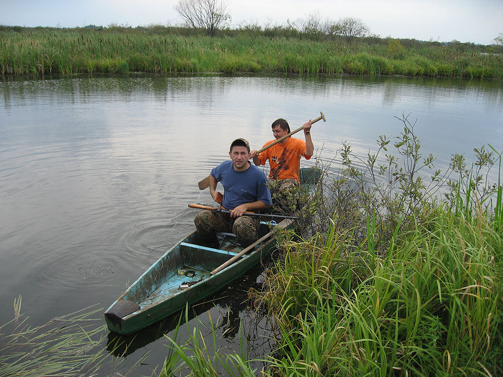 Пострелять удалось от души. Хоть утка летала на предельных высотах, я бы в другой раз и стрелять на такую дистанцию не стал. Но не хотелось ударить в грязь лицом Стреляли много, почти все по патронташу за зорьку выстреливали, но добывалось 1-2 утки на лицо за зорьку. Я правда дико лоханулся привезя с собой остатки патронов купленных 3 года назад - пятерка безконтейнерная Да еще стреляя через сужение 0,5 так как остальные чоки тупо не взял Не знаю что не так с патронами, но результативно (по опыту отстрела) ими можно стрелять только метров на 15 а никак не на 50. С 15 метров из утки сыпались перья но она летела дальше без каких либо последствий. Надо на досуге попробовать в деревяху ими стрельнуть и по бумаге. Самому интересно что не так. а то у меня еще пачек несколько осталось, не выкидывать же.