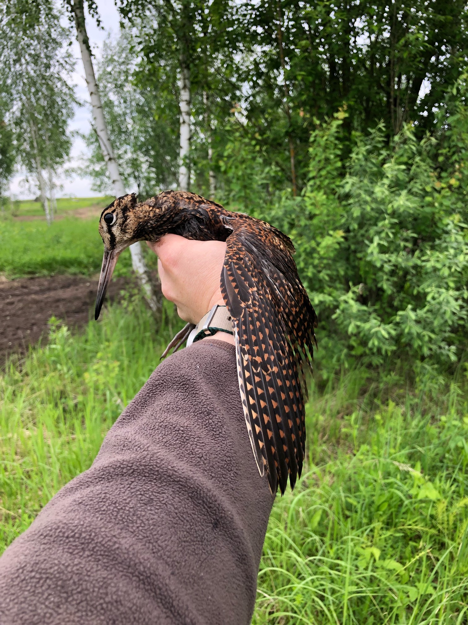 Очень много вальдшнепа, те, что постарше уже перелетаю на небольшие расстояния, молоденькие просто залегают в траве, вот как раз им и не лететь этой весной во францию и т.п лично ловил молодого вальдшнепа, переносил в место где техника уже проехала.