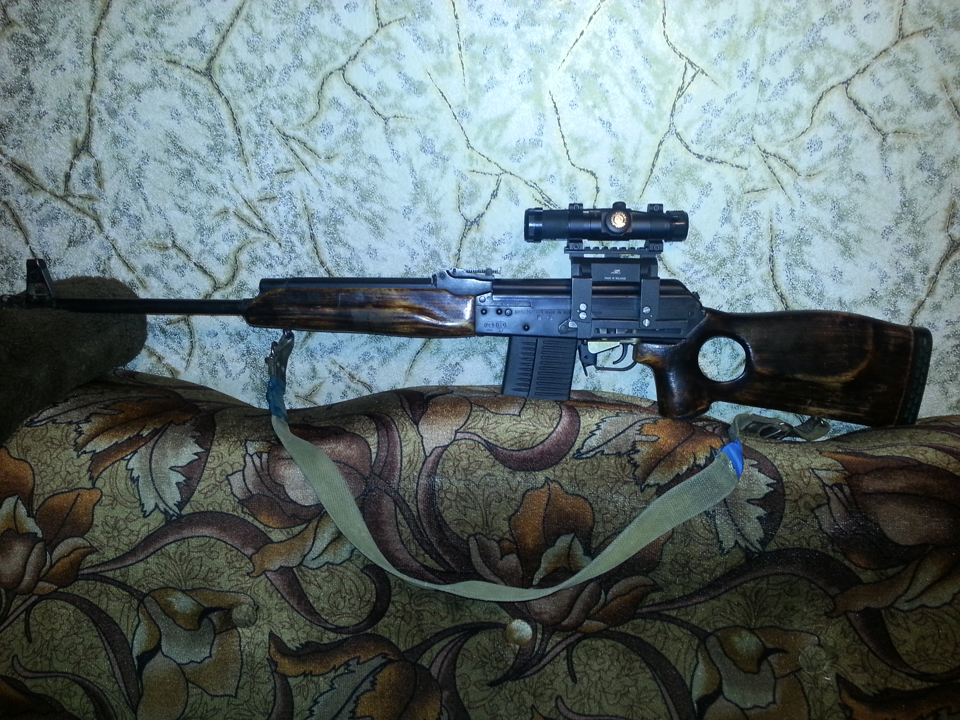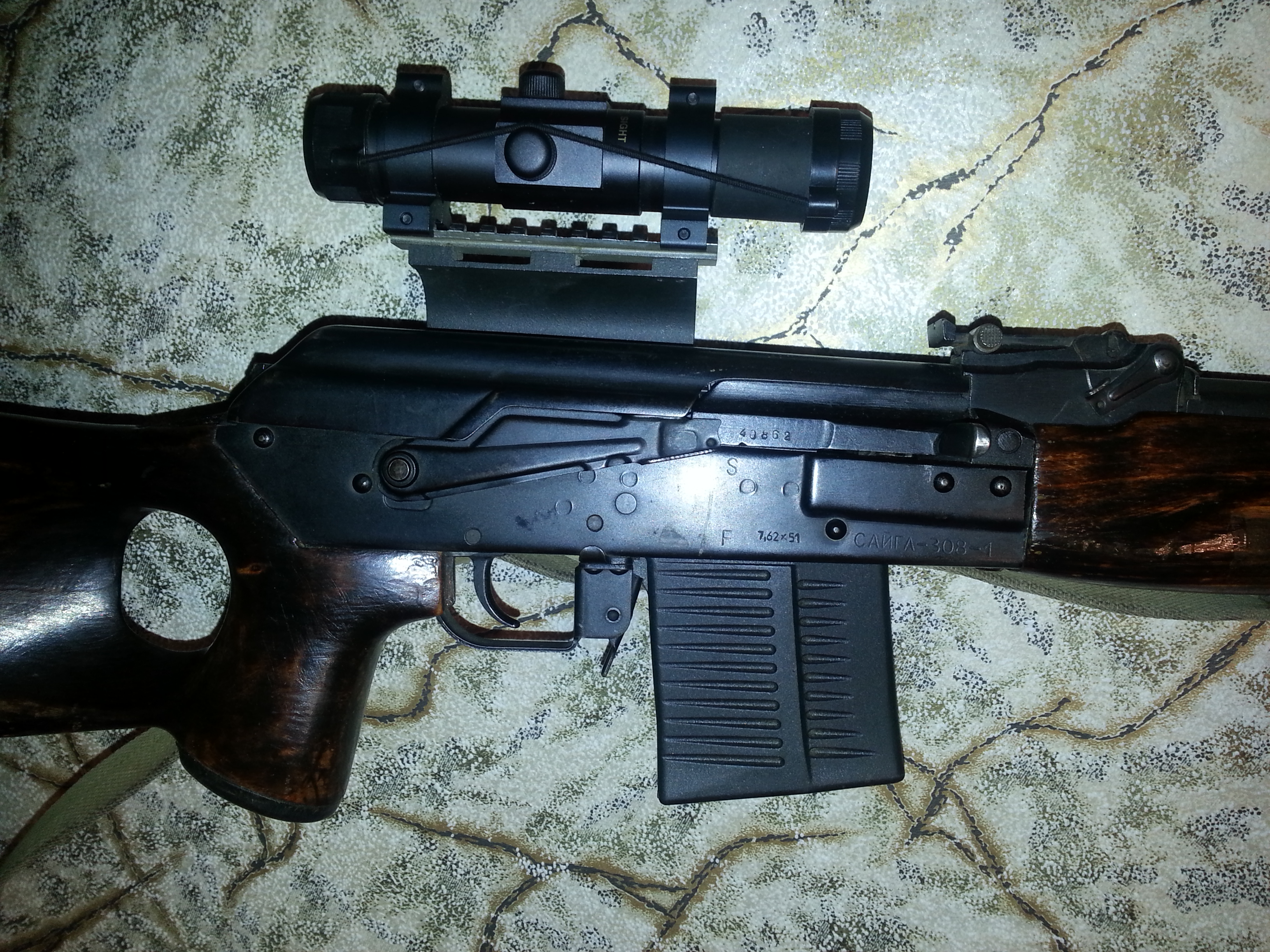 Продается карабин с коллиматорным прицелом закрытого типа хакко(япония), сайга 308 1,WIN 308 ,51 патрон,год выпуска 2009,настрел 170 патронов отличный бой, продается так как приобрёл болтовик .Г Стародуб, цена 20000т.р,, без прицела12000т.р фото по запросу