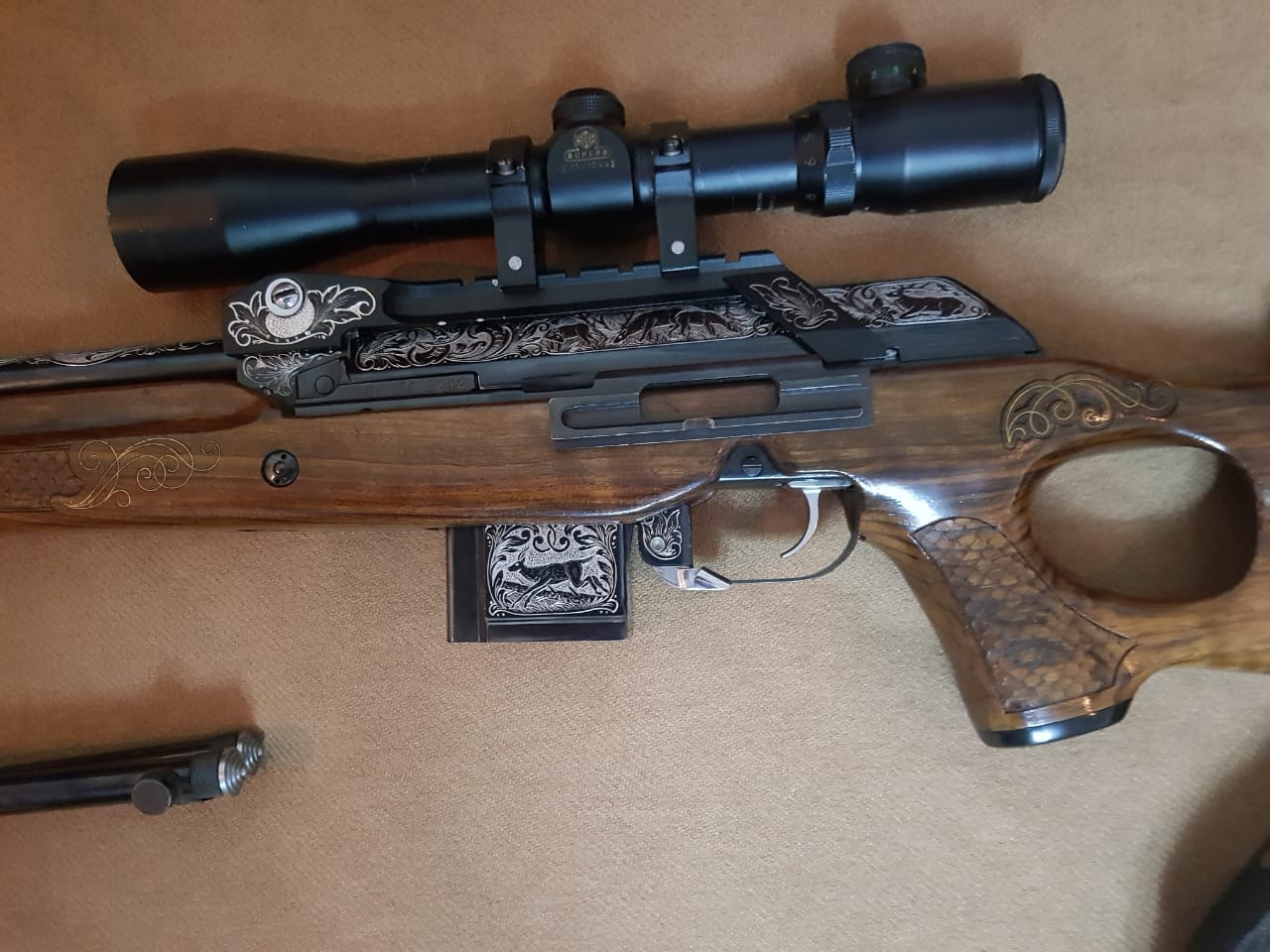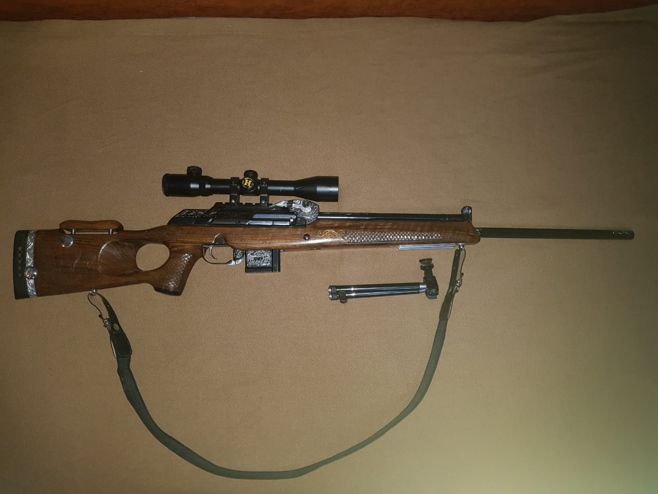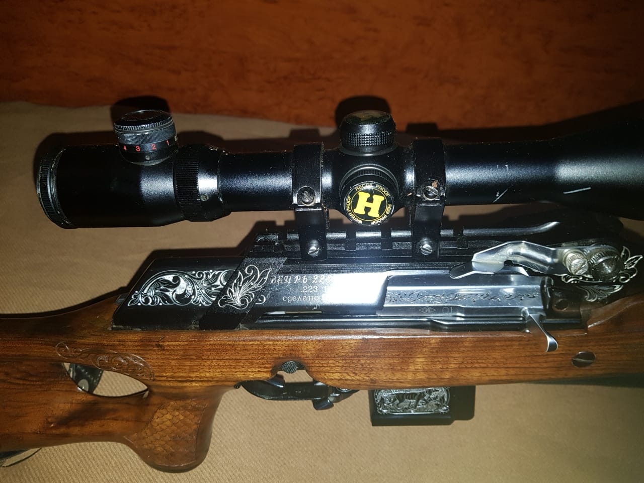 Продается Вепрь супер 223 сделанный по спецзаказу, штучное художественное исполнение в идеальном состоянии. Настрел 20 выстрелов, делалось на заказ с выбором идеального ствола и мягоньким спуском в комплекте сошки заводские - очень удобные Так же в комплекте прицел Hakko 2,5-10x42 Super B с подсветкой За все хотят 40 000