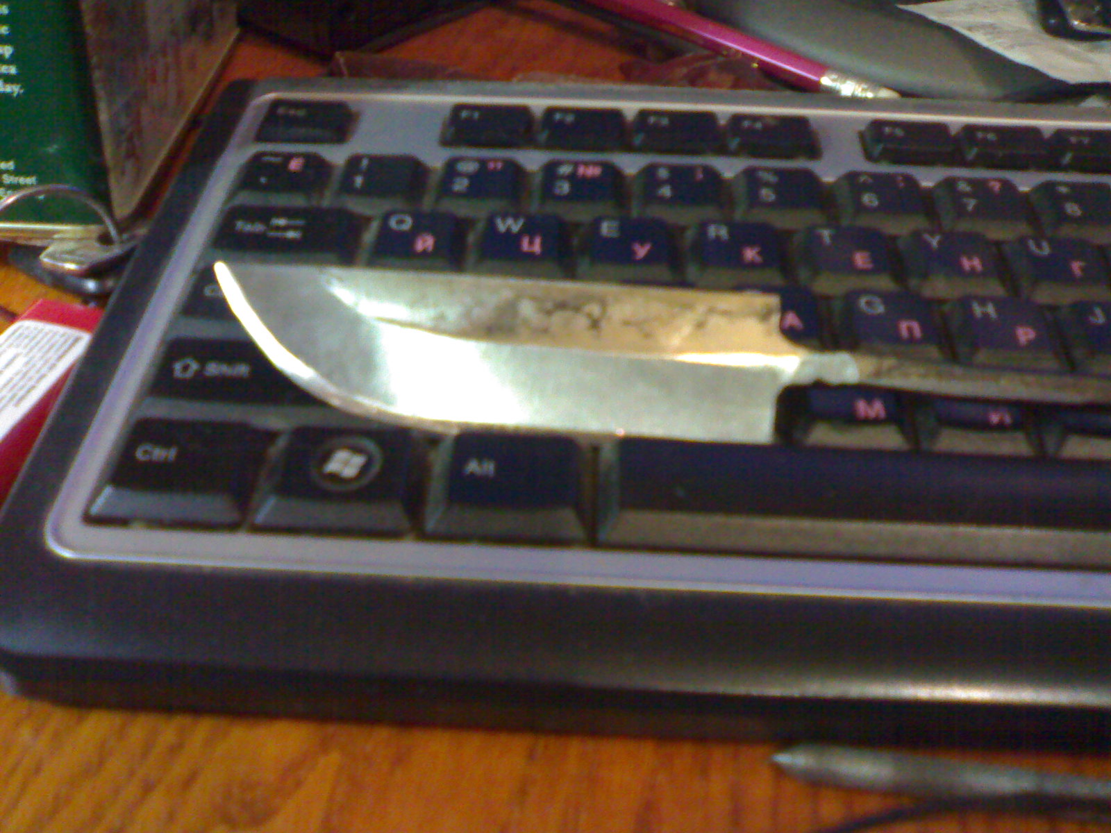 В общем лезвие удалось спасти. Отпустил его полностью, теперь уже нарезал хвостовик (точнее его начало), приварил пруток вместо хвостовика. Теперь точно не ХО длина клинка 85мм. И вновь закалил. Закалку делал зонную, через воду в масло. В принципе получилось. Даже видна зонность закалки на спусках, отполирую будет замечательно видно. Твердость хз какая, но вжикать по камню я задолбался. На алмазе таже хрень, правда он у меня не крупный.
