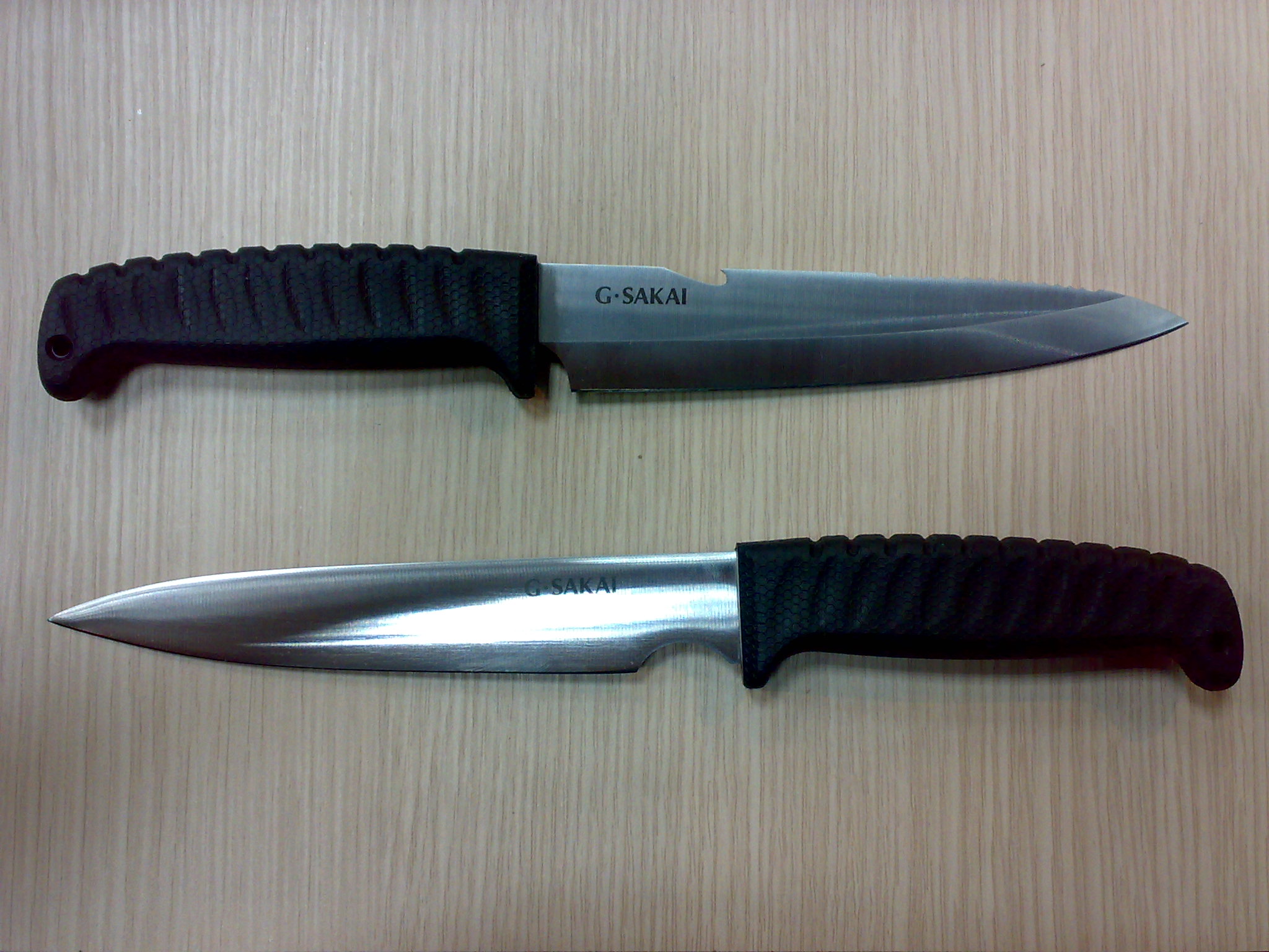 Японские G Sakai, сталь 440С, 56HRC, рукоять - кратон, пластиковые ножны, на верхнем односторонняя заточка.