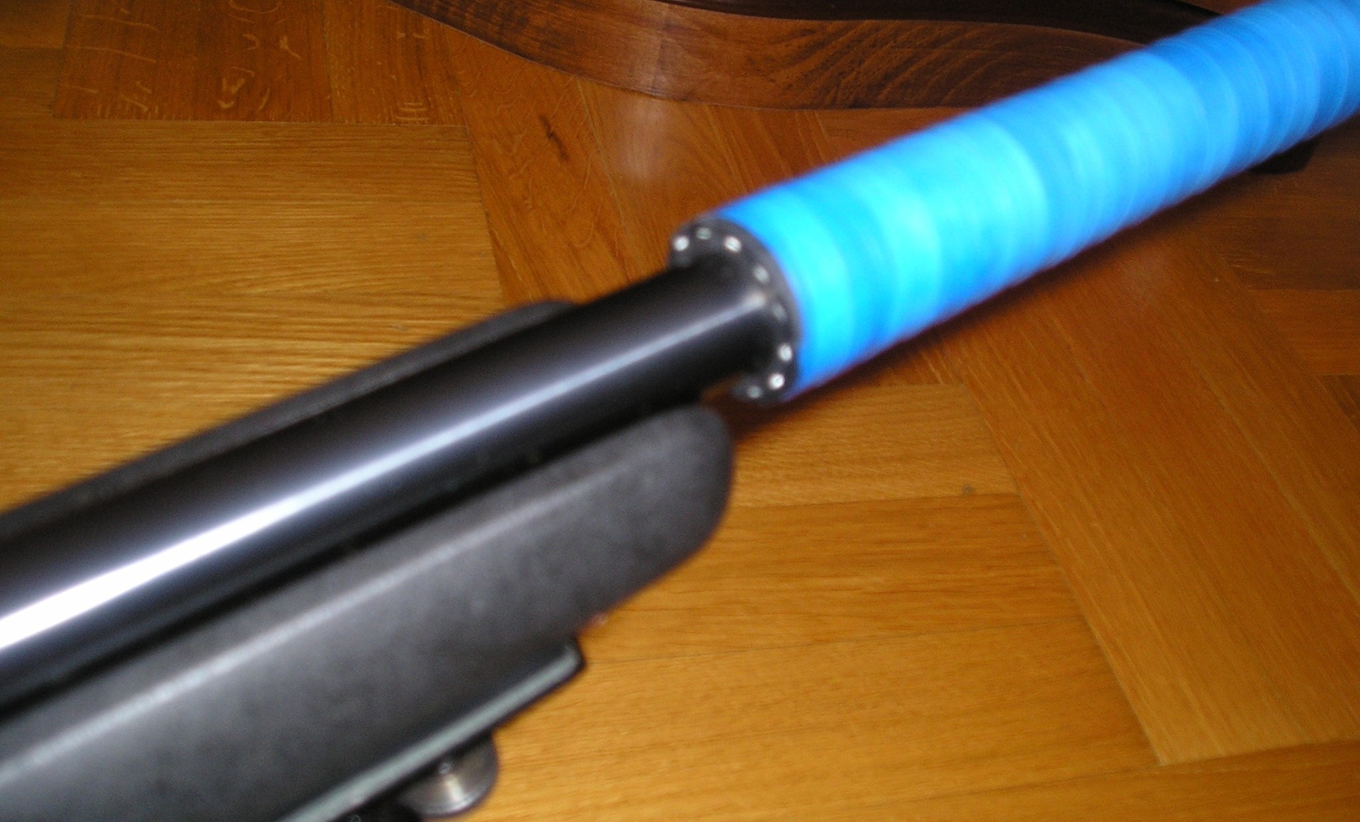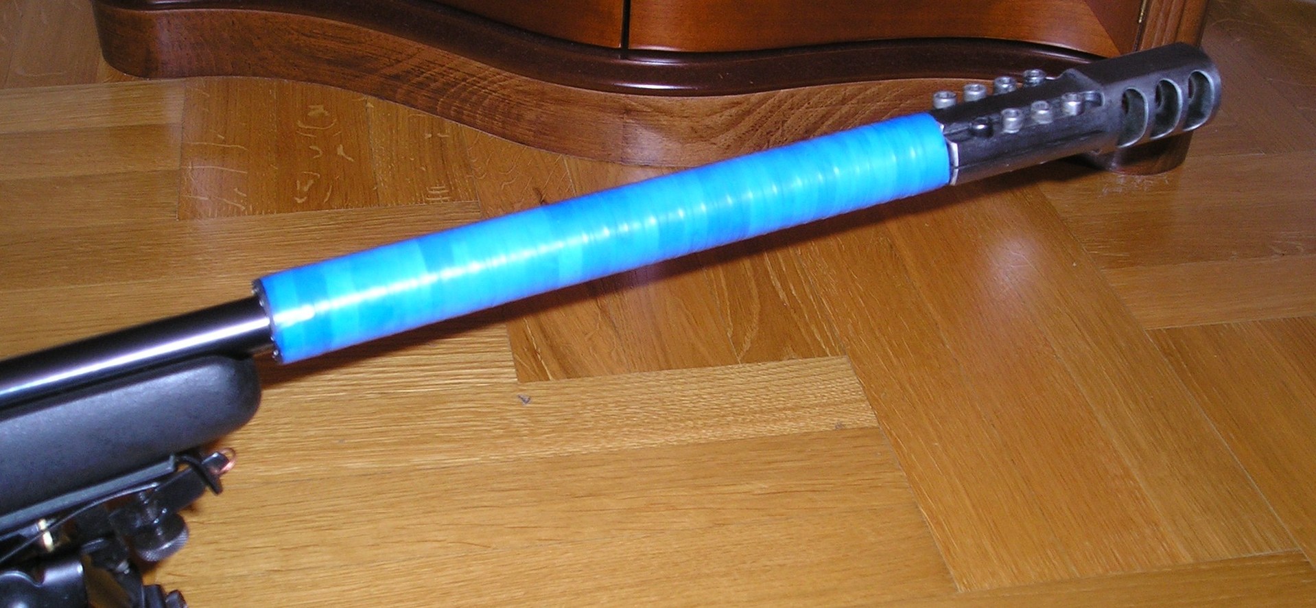 Связываться с первым вариантом, по определенным причинам не хотелось, второй вариант казался малоприменим в силу тоненького ствола, но возникла мысль попробовать, как то уменьшить, или частично "погасить" колебания ствола. Проведенные опыты, показали "высокую эффективность", разного рода садовых шлангов.))))))