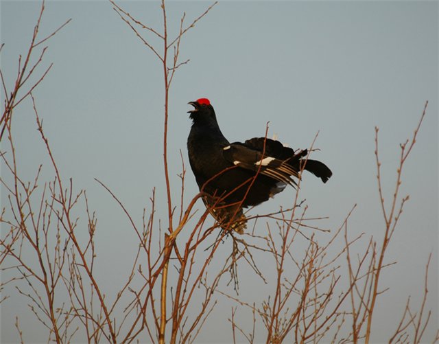 Ты брови рассматриваешь у уже битого осеннего тетерева.А это-токующий весенний тетерев,судя по виду.Потому я и говорил посадить его на землю.А то получается- токующий на берёзе тетерев. Так не бывает.