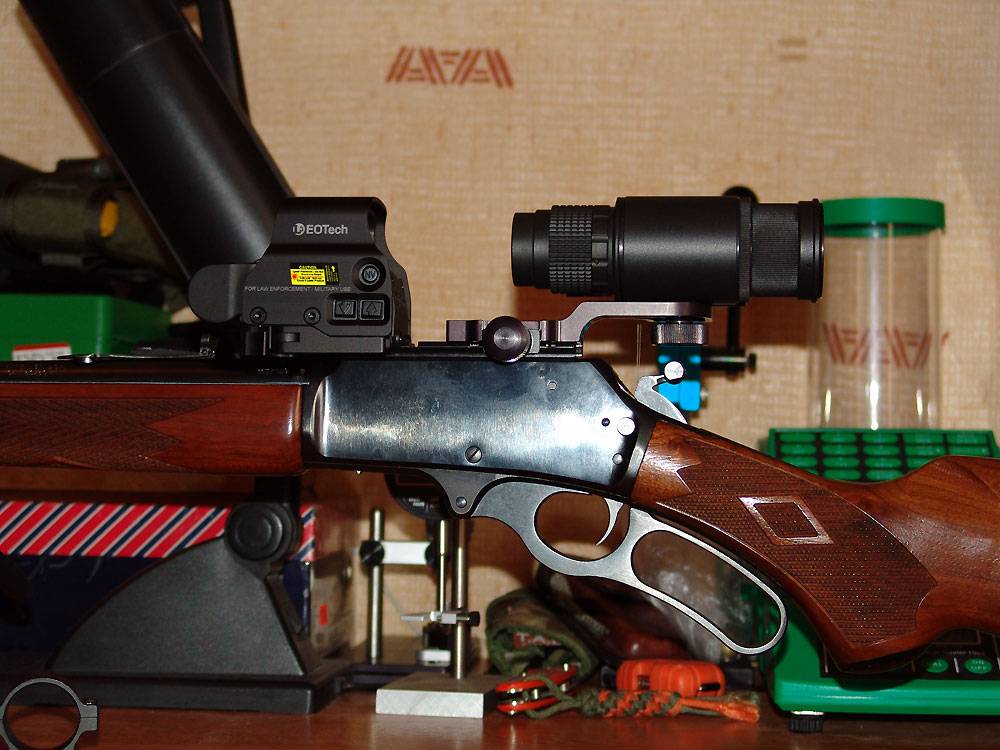 Дико смотрятся навороченные хайтеки :)) Эотек xps 3 и D-300 поколения 3 на карабине образца 1895 года :)