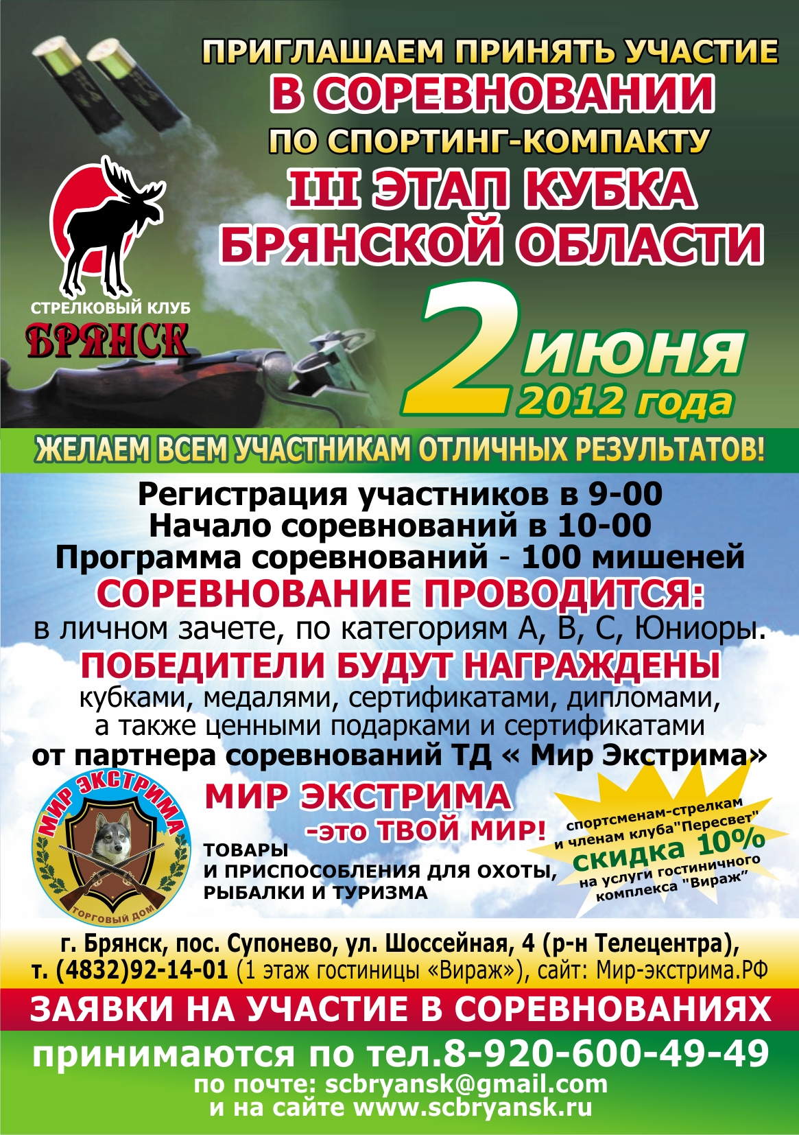 2 июня 2012 года "Стрелковый Клуб Брянск" проводит III этап Кубка Брянской области по спортинг-компакту.
