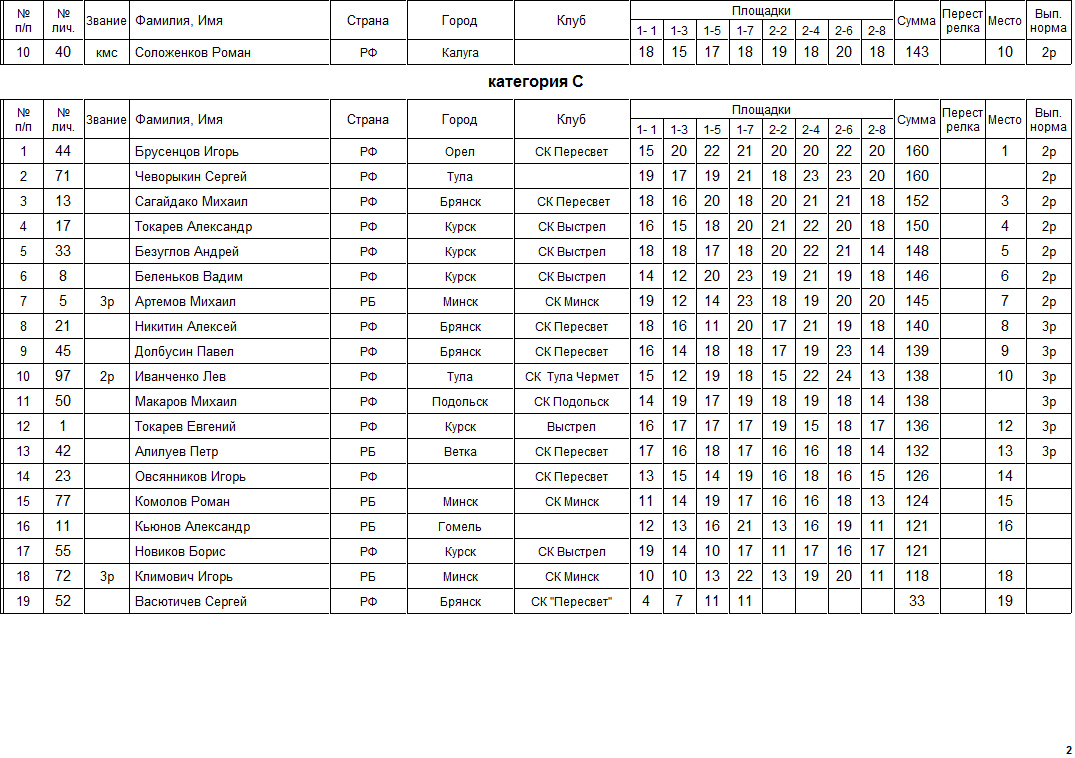 Программа соревнований - 200 мишеней.