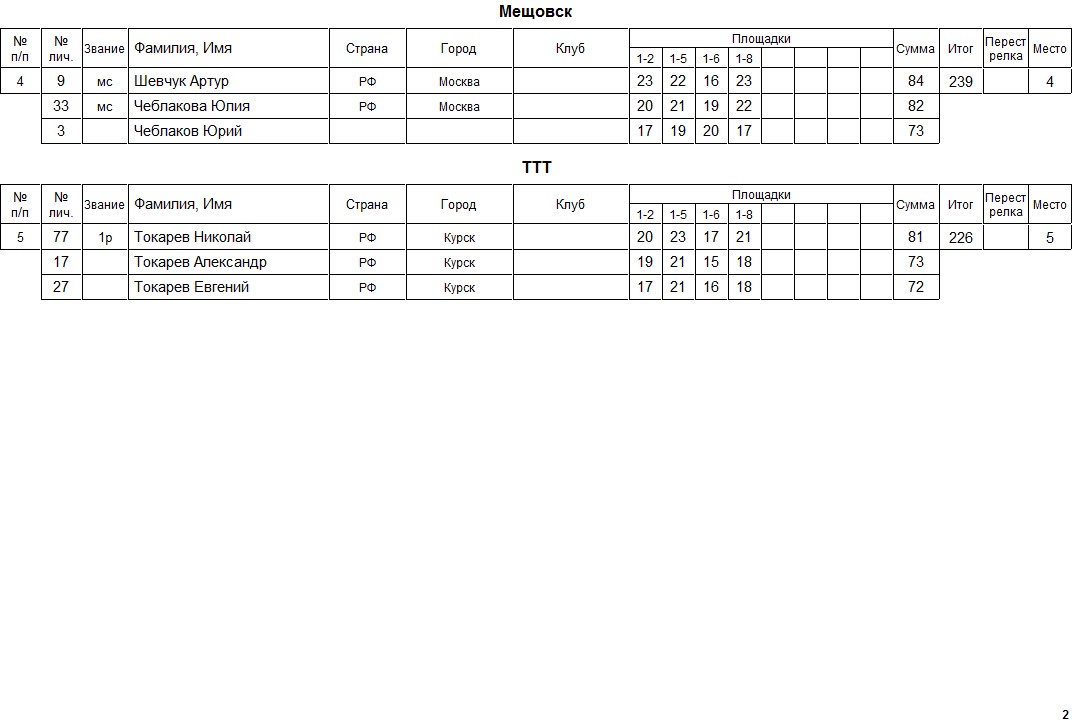 Программа соревнований - 100 мишеней.