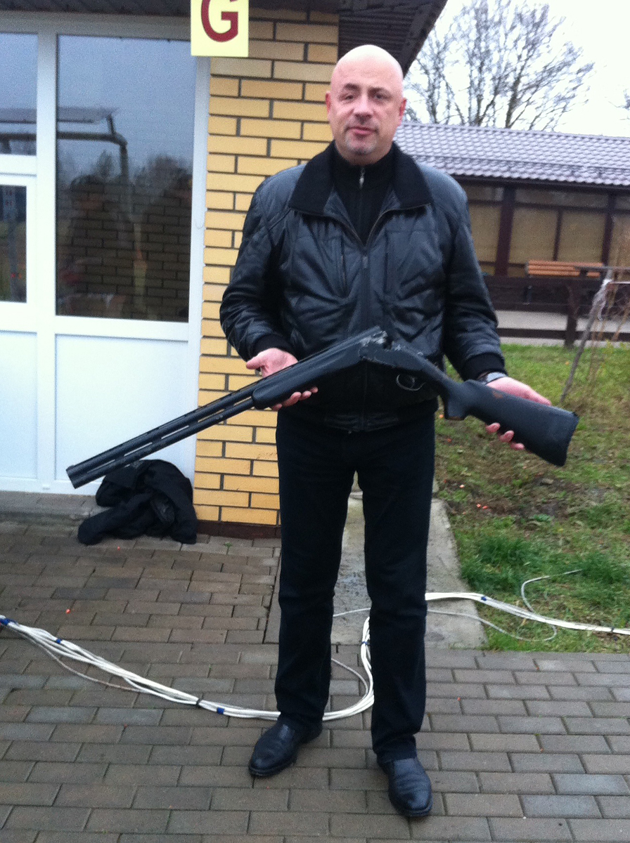 Четко стреляет,но полю бас у него приклад подогнан под него, видна хорошая вкладка, и длина у приклада приличная. Это типа как продолжение рук.