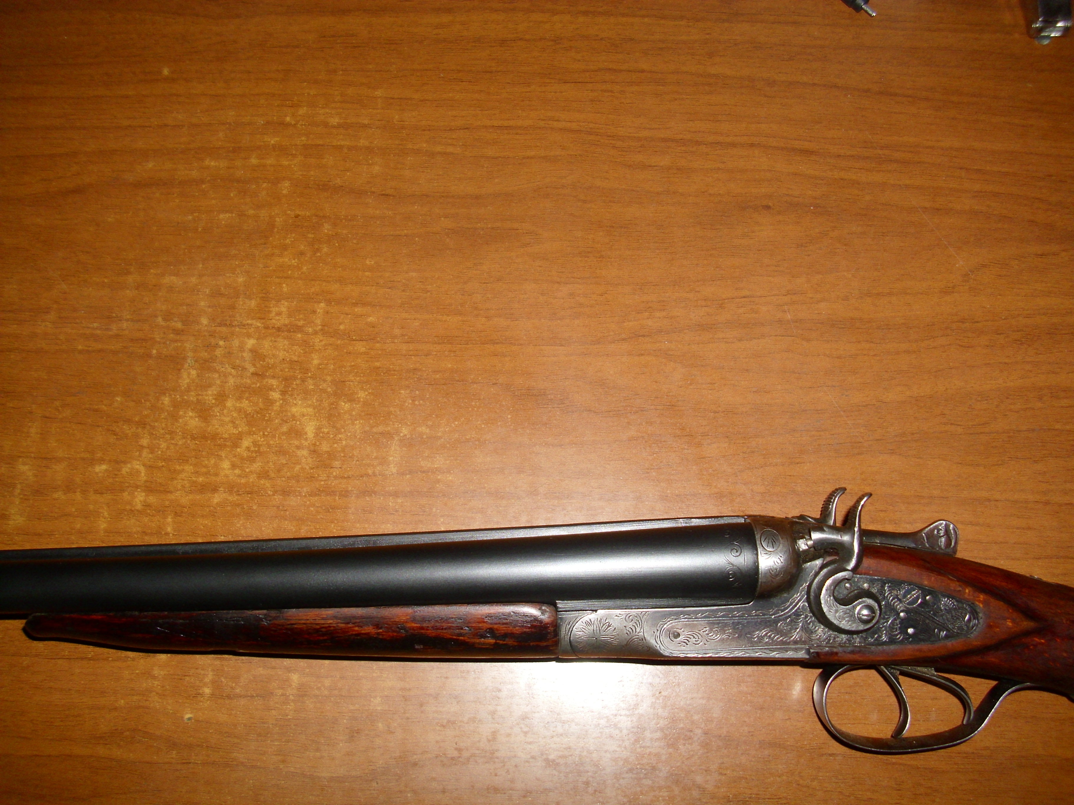 До его вмешательства в моё жестокое обращение с оружием, казённая и дульная части ствола были голым светлым металлом. А стволы болтались так, что переламывать не надо было для перезарядки.