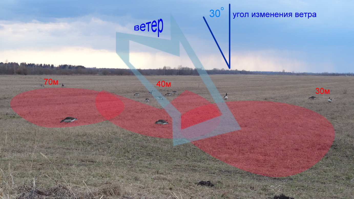 5) Мысленно выбранная схема расстановки (с учётом прогноза погоды на день охоты).